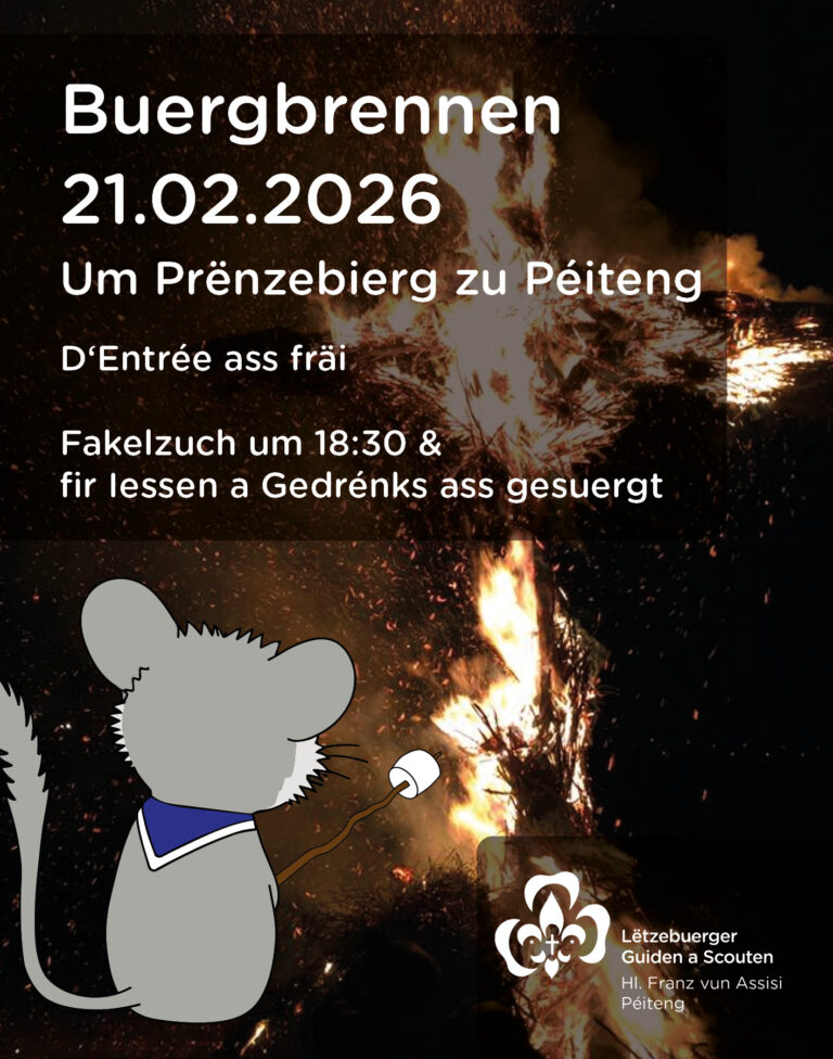 D’Guiden a Scouten sinn eng Schoul fir d’Liewen. Léier d’Natur, deng Matmënschen an dech selwer nei kennen, an eise Versammlungen, Weekender a Campen. Fann eraus wisou eise Motto « allzäit bereet » ass!